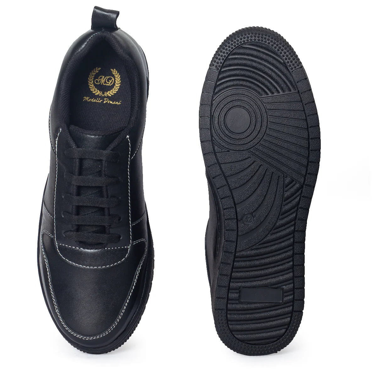 Handcrafted lace-up comfort leather sneakers with padded fabric lining for cushioning and rubber sole for grip and durability.