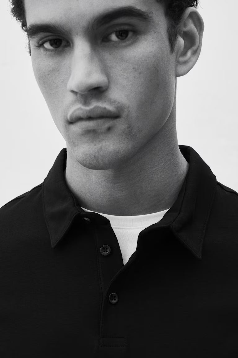 Polo shirt in lightweight cotton jersey with a collar, button placket, short sleeves and a straight-cut hem. Slim fit that hugs the contours of your body, creating a fitted silhouette.
